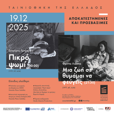 Παρακολουθήστε το Πικρό ψωμί του Γρηγόρη Γρηγορίου και το Μια ζωή σε θυμάμαι να φεύγεις της Φρίντας Λιάππα ψηφιακά αποκατεστημένα και καθολικά προσβάσιμα, με ελεύθερη είσοδο!