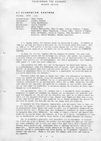 ΤΑΙΝΙΟΘΗΚΗ ΤΗΣ ΕΛΛΑΔΟΣ, ΜΙΚΡΗ ΛΕΣΧΗ (ΚΑΝΑΡΗ 1) - ΔΙ' ΑΣΗΜΑΝΤΟΝ ΑΦΟΡΜΗΝ