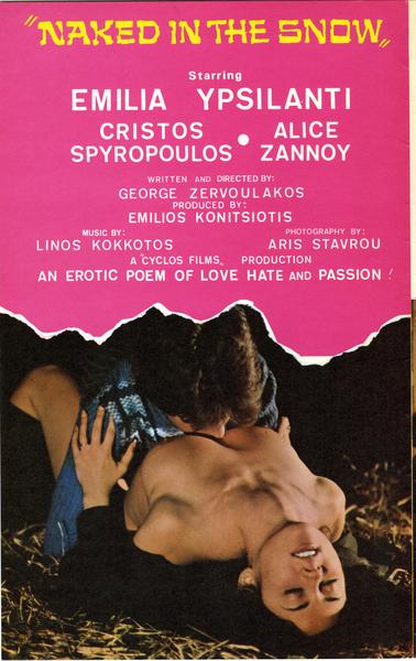 Διαφημιστικό έντυπο για την ταινία του Γιώργου Ζερβουλάκου "Γυμνοί στο χιόνι". Με τους ηθοποιούς και τους συντελεστές της ταινίας, την υπόθεση του έργου και φωτογραφίες.